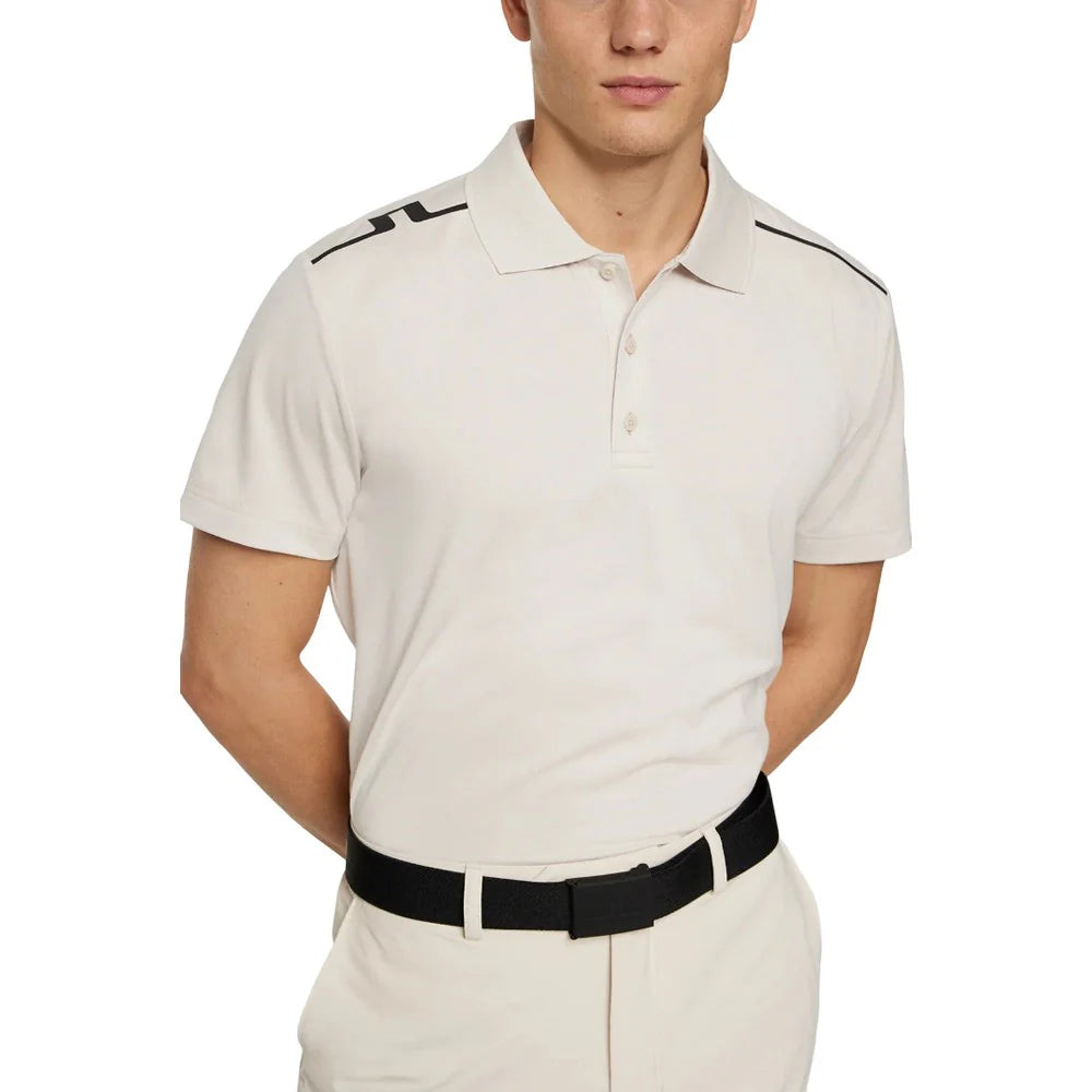 Clean lines, breathable stretch. The Lionel Polo features a ribbed collar, shoulder stripes, and multiple J.Lindeberg logos. Fast-drying and flexible — made for modern performance.